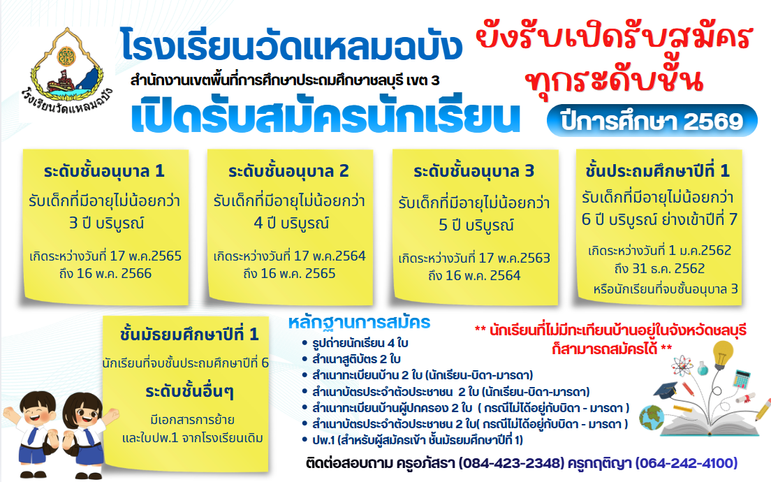 ยินดีต้อนรับเข้าสู่เว็บไซต์ โรงเรียนวัดแหลมฉบังค่ะ...
